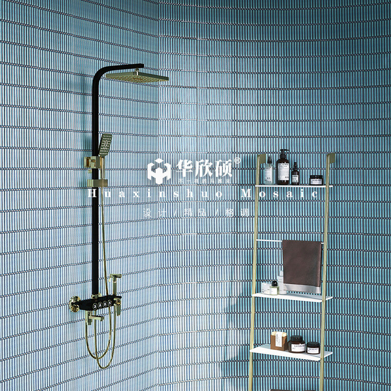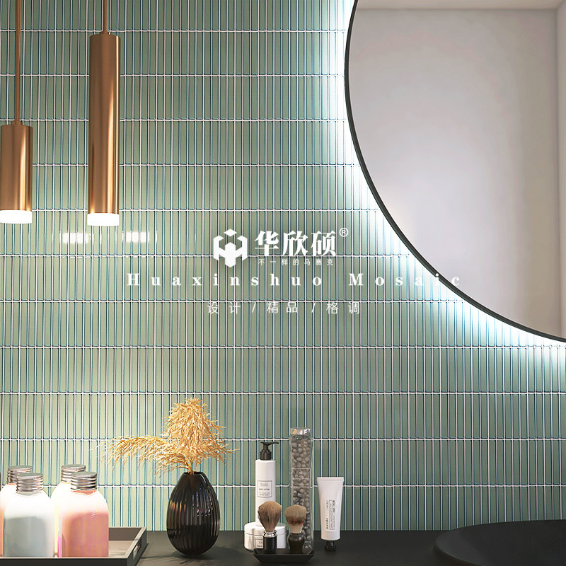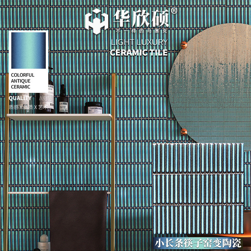 华欣硕窑变小长条筷子马赛克陶瓷黑白蓝绿色餐厅背景墙卫生间瓷砖
