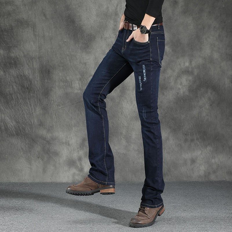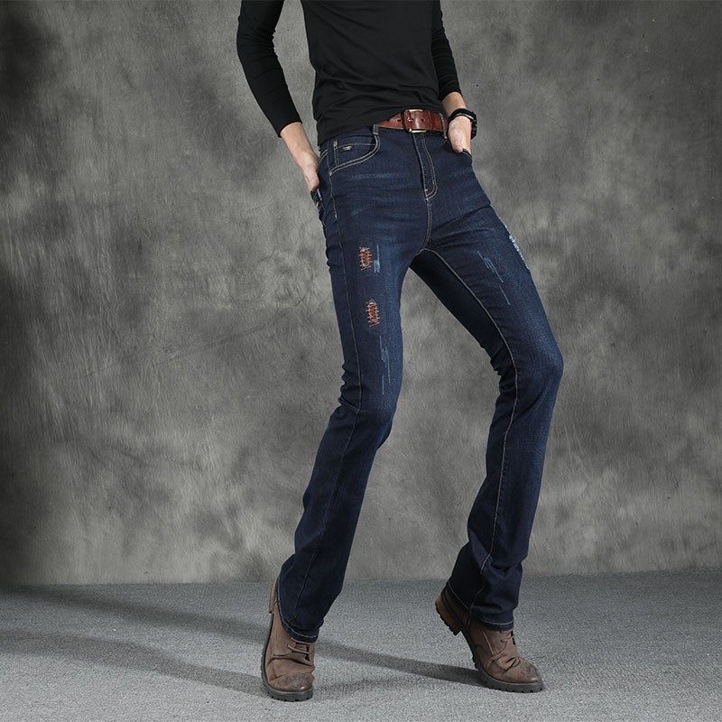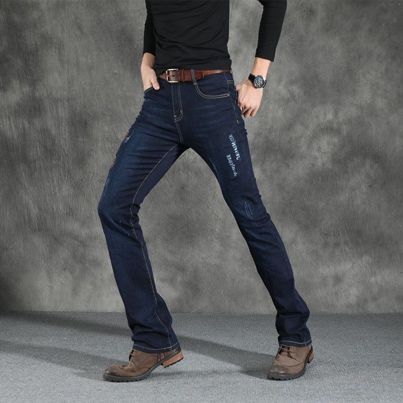 23春秋新款男微喇叭牛仔长裤韩版潮弹力修身男破洞绣花补丁牛仔裤