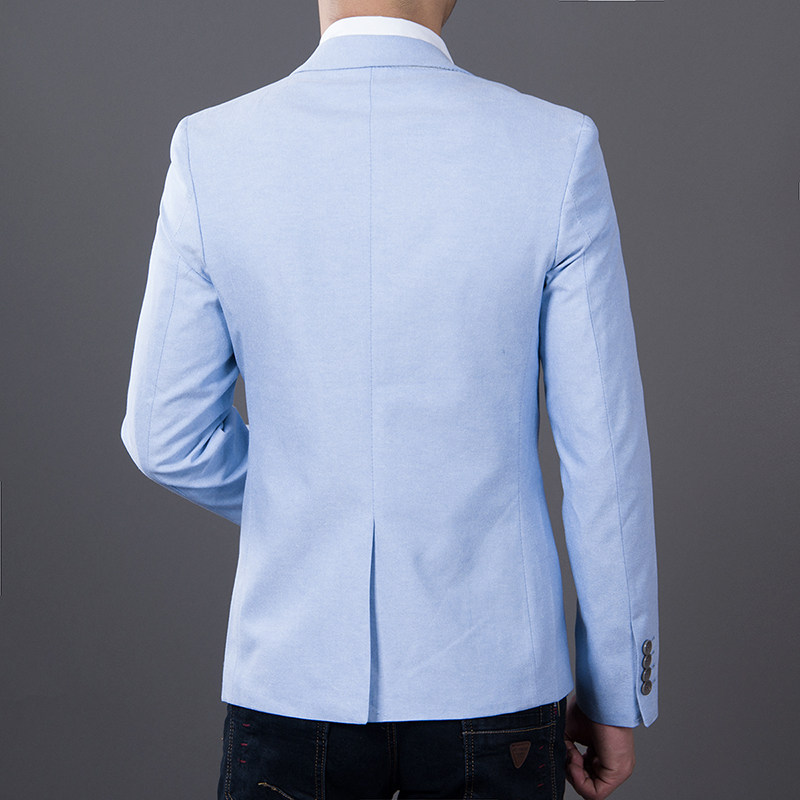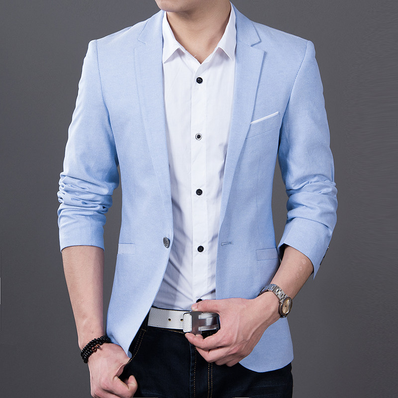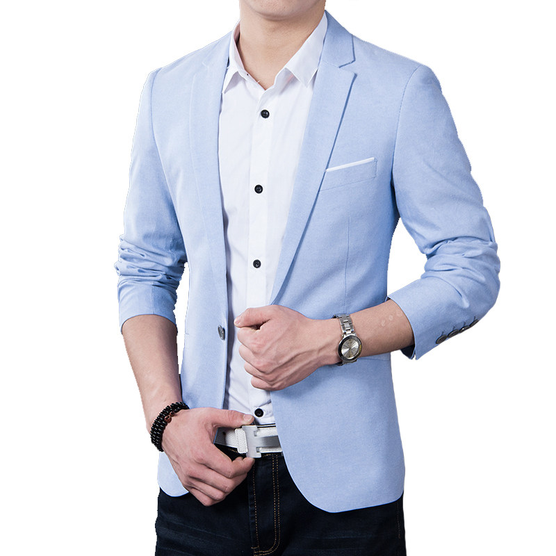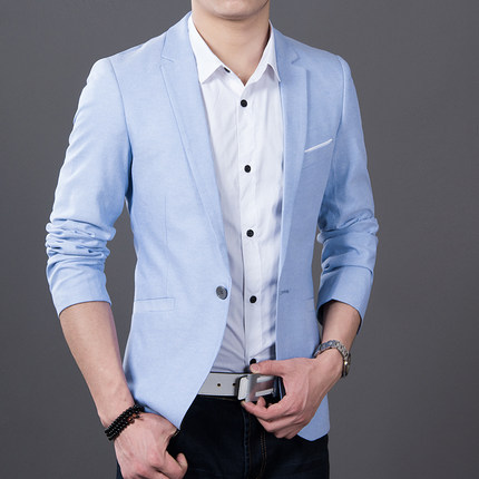 西服男修身休闲长袖青年天蓝色西装薄外套单西时尚帅气加大码日常