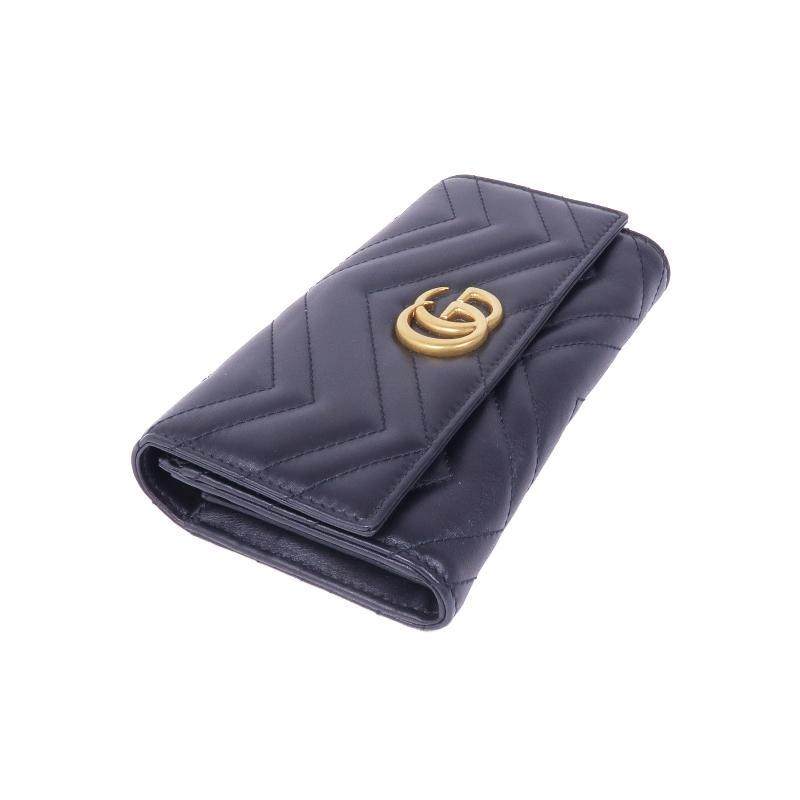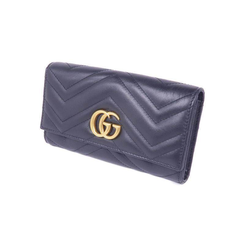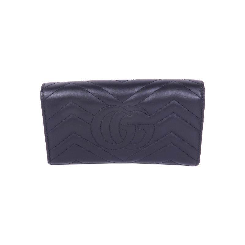 中古Gucci古驰女A级95新Marmont马蒙包牛皮长钱包黑色