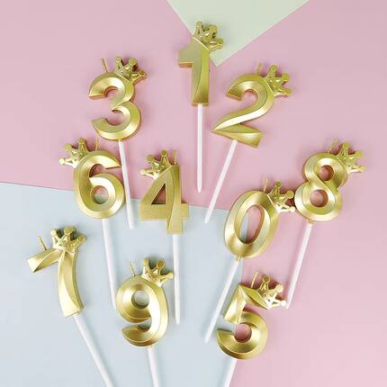 ins风创意金色皇冠数字蜡烛宝宝周岁生日派对蛋糕装饰拍照道具