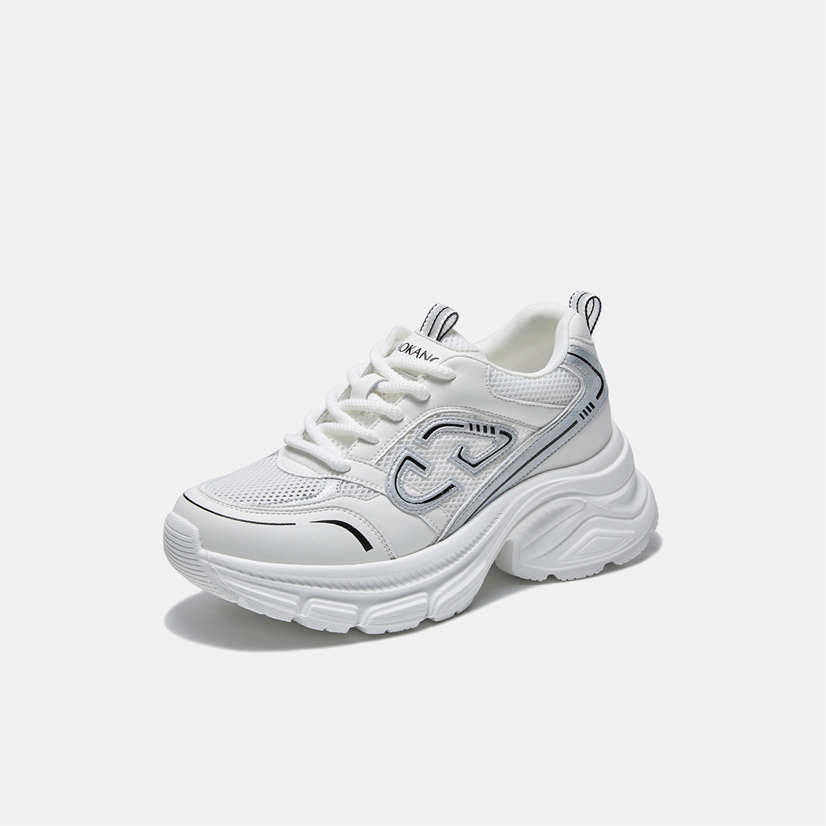 奥康 女鞋2025秋季新款美式复古百搭运动休闲鞋网面透气老爹鞋女