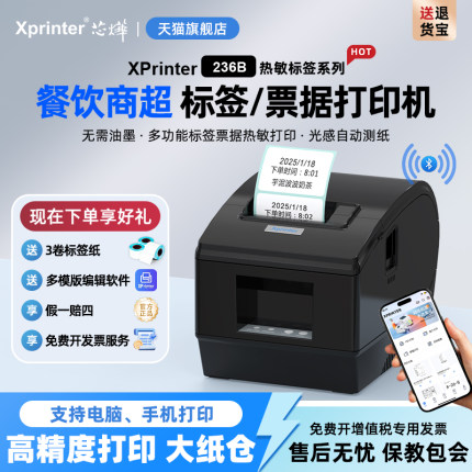 芯烨XP-236B/365B热敏标签打印机不干胶条码二维码外卖服装吊牌超市奶茶贴纸打标机商超条形码蓝牙电子标签机