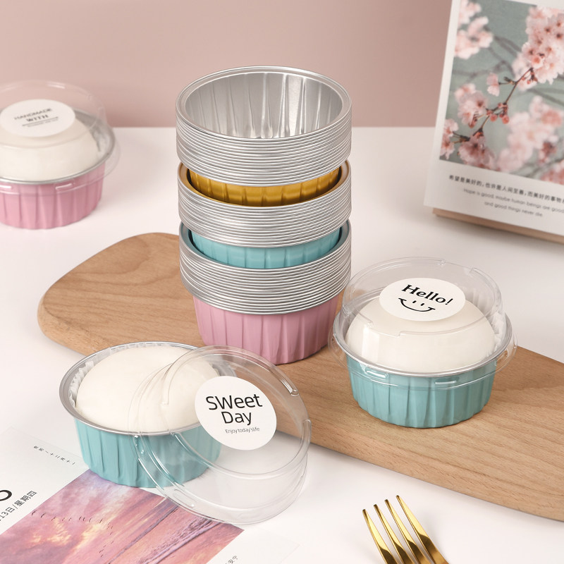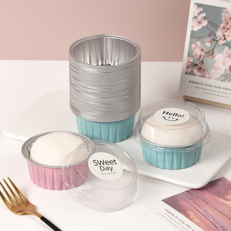 圆形雪媚娘大福包装盒子慕斯布丁单个蛋糕杯一次性锡纸铝箔打包盒
