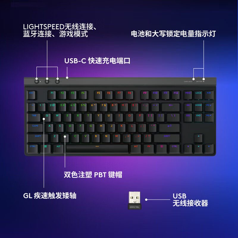 罗技G515 TKL无线机械矮轴键盘电竞游戏蓝牙三模紧凑型RGB拆包