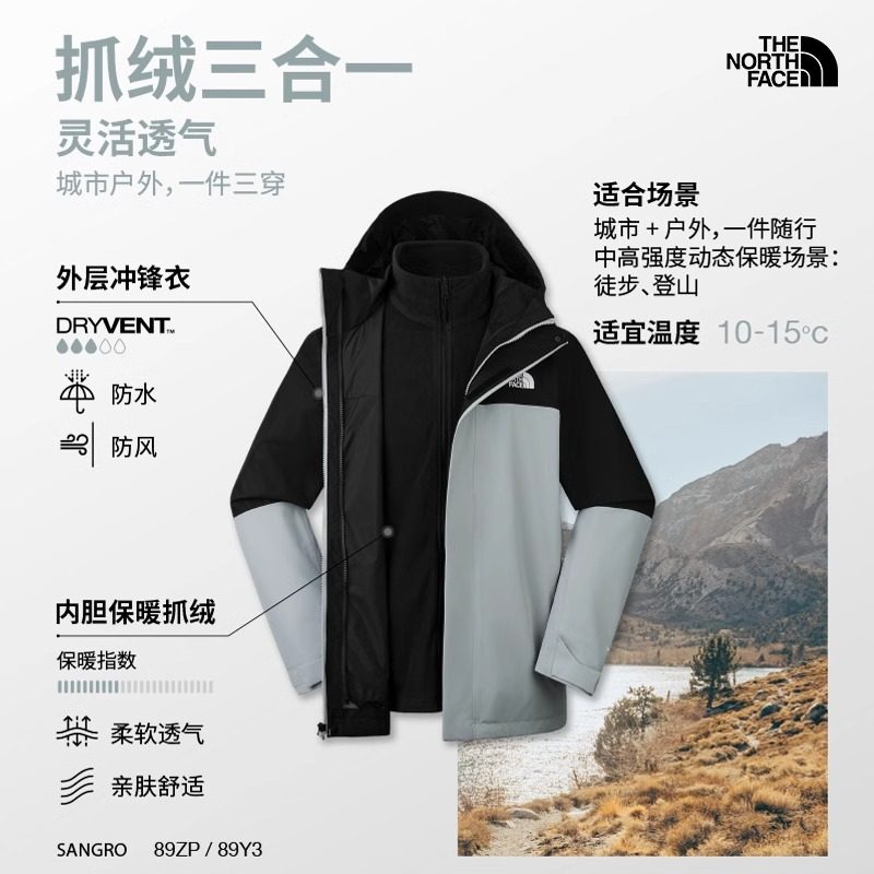 TheNorthFace 北面三合一冲锋衣抓绒内胆男秋冬新品防水户外|89ZP