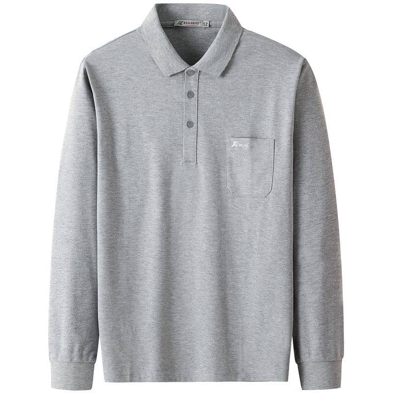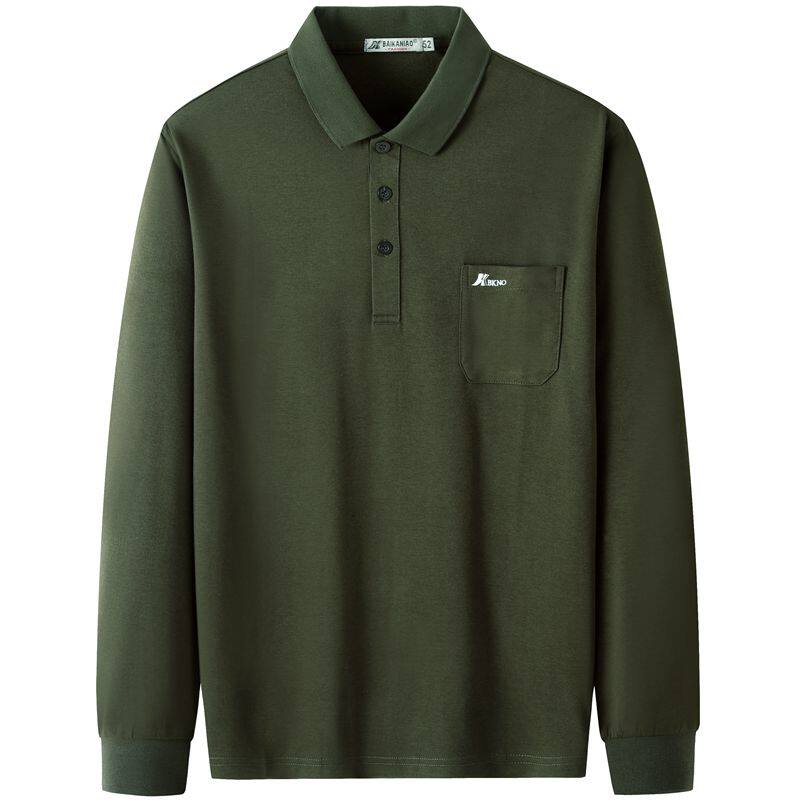 爸爸纯棉长袖t恤中年男士翻领春秋季上衣中老年人男装秋装Polo衫