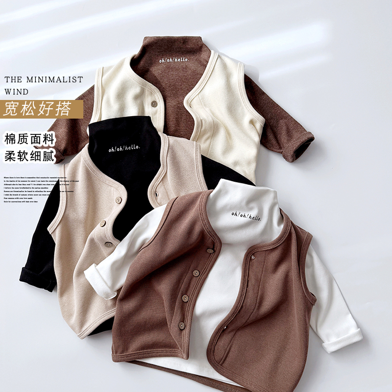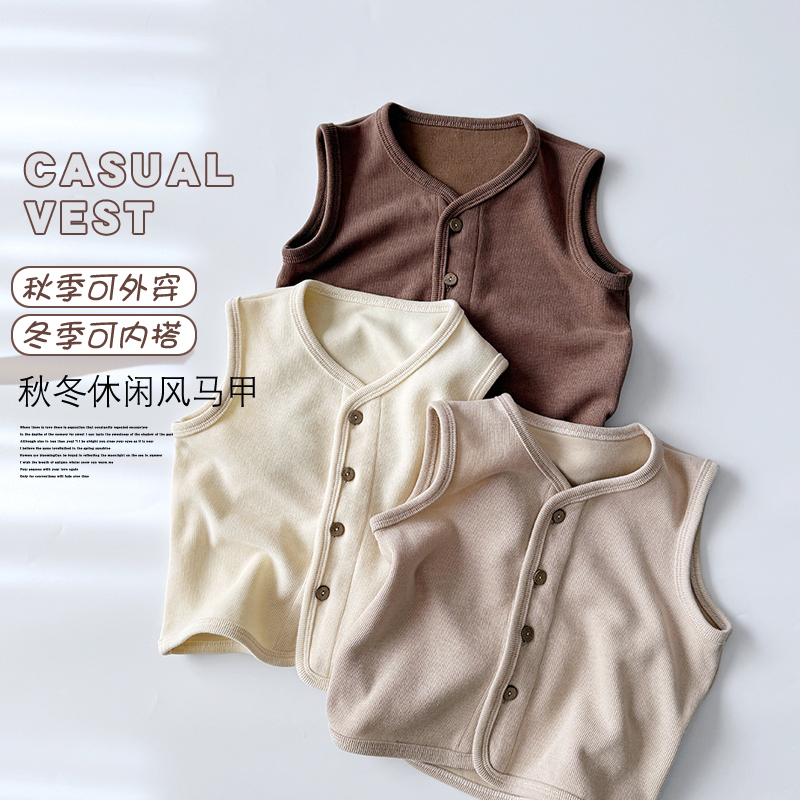韩国新款秋冬儿童马甲男女宝宝保暖背心马夹舒服针织坎肩纯色洋气