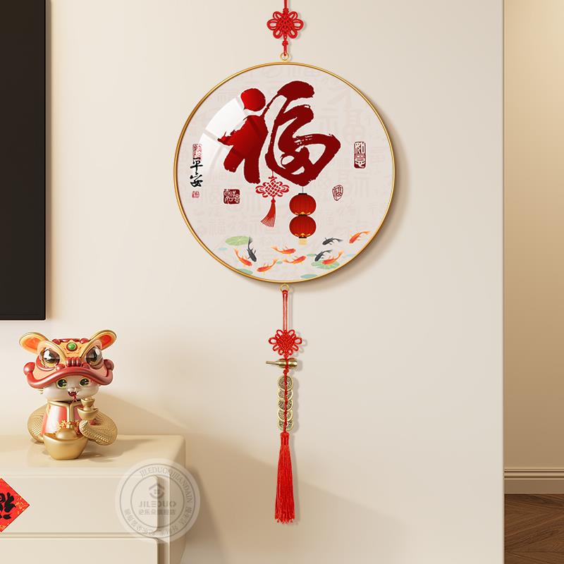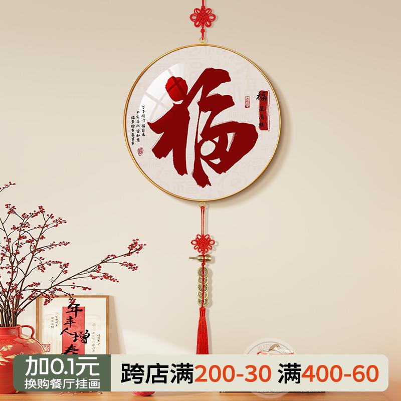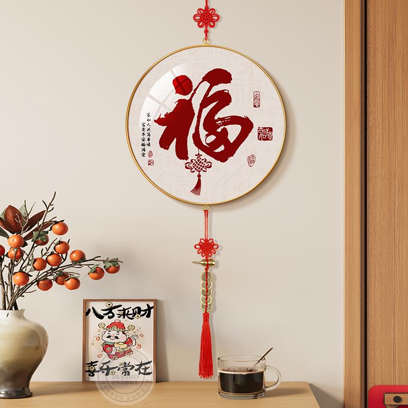 福字装饰画春节喜庆布置中国结圆形挂饰餐厅好寓意挂画五帝钱挂件