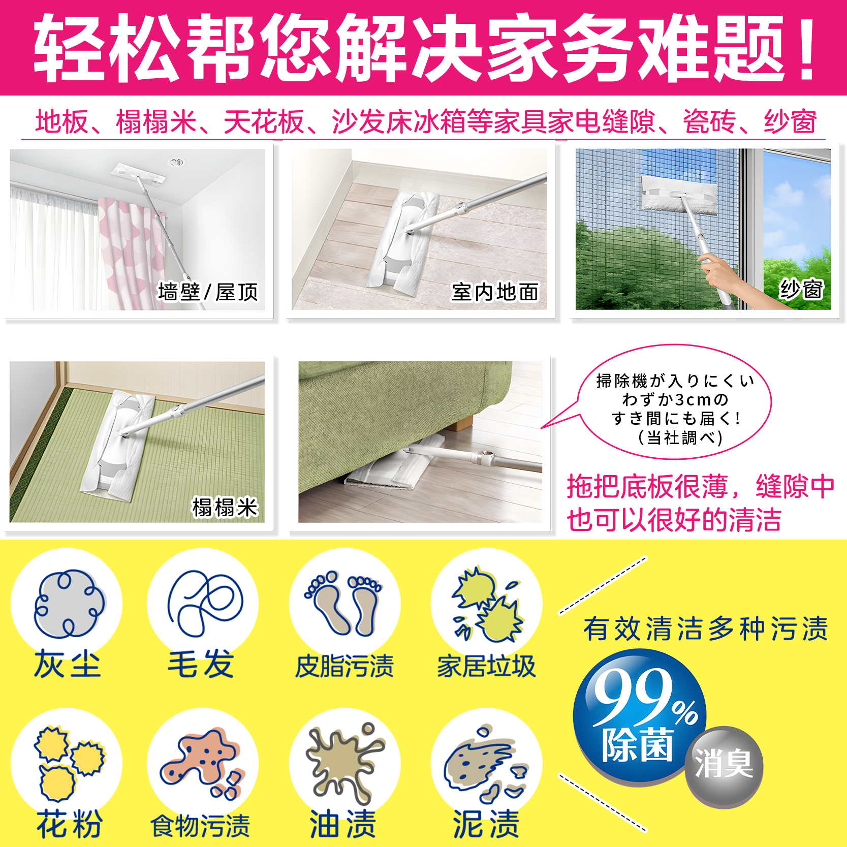 日本花王懒人静电拖把家用免洗除灰尘毛发平板拖布替换除尘纸干巾