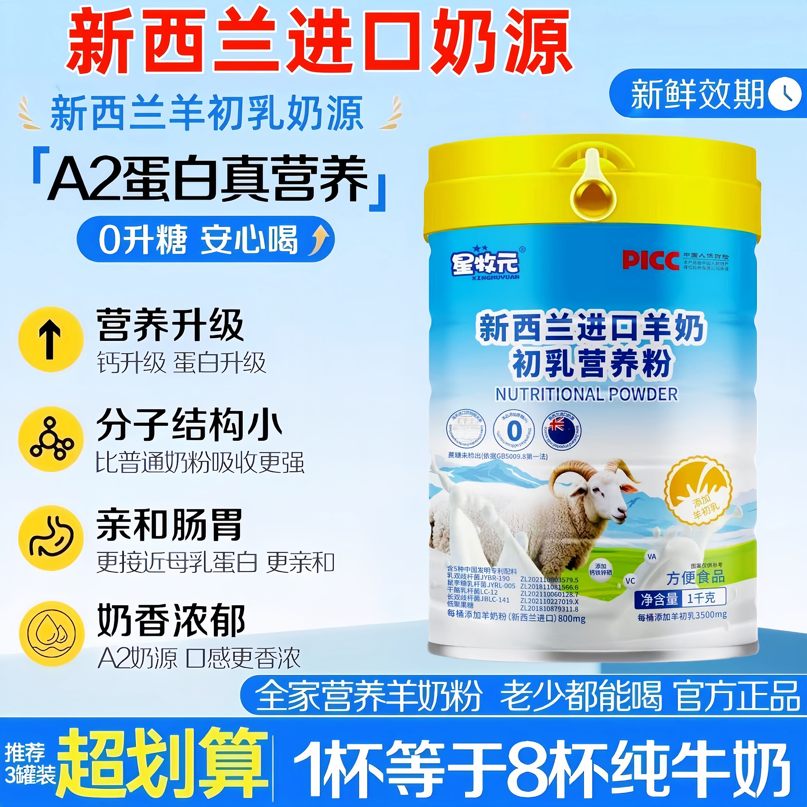 新西兰进口羊奶正宗无蔗糖高钙富硒益生菌中老年人羊奶粉官方正品