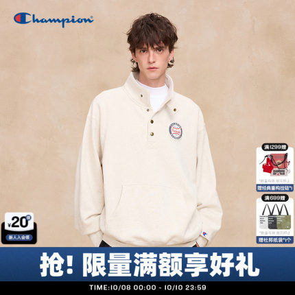 Champion冠军高领卫衣男2025秋季新款立领设计休闲复古潮牌女美式