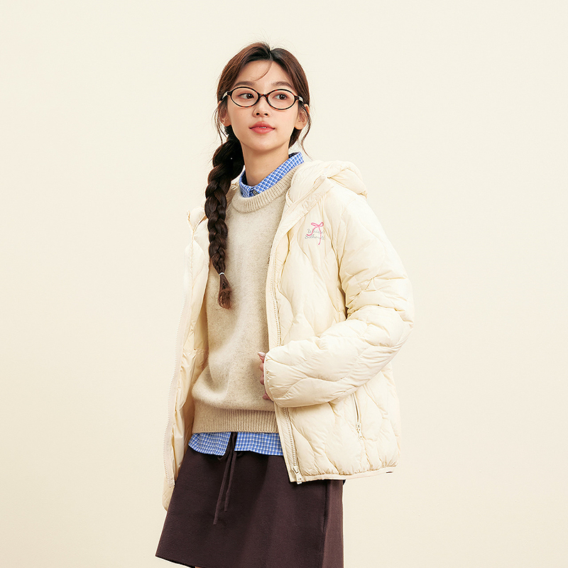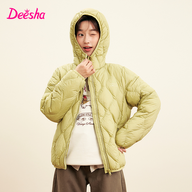 笛莎童装女童羽绒服秋冬季新款儿童青少年中大童轻薄外套连帽菱格