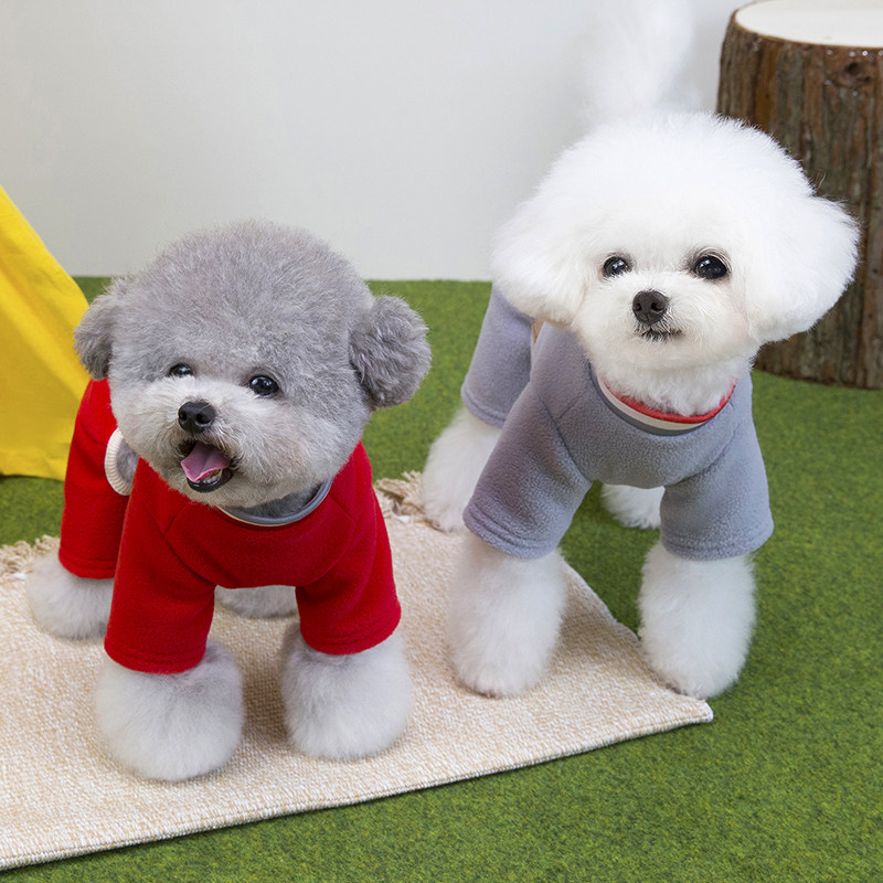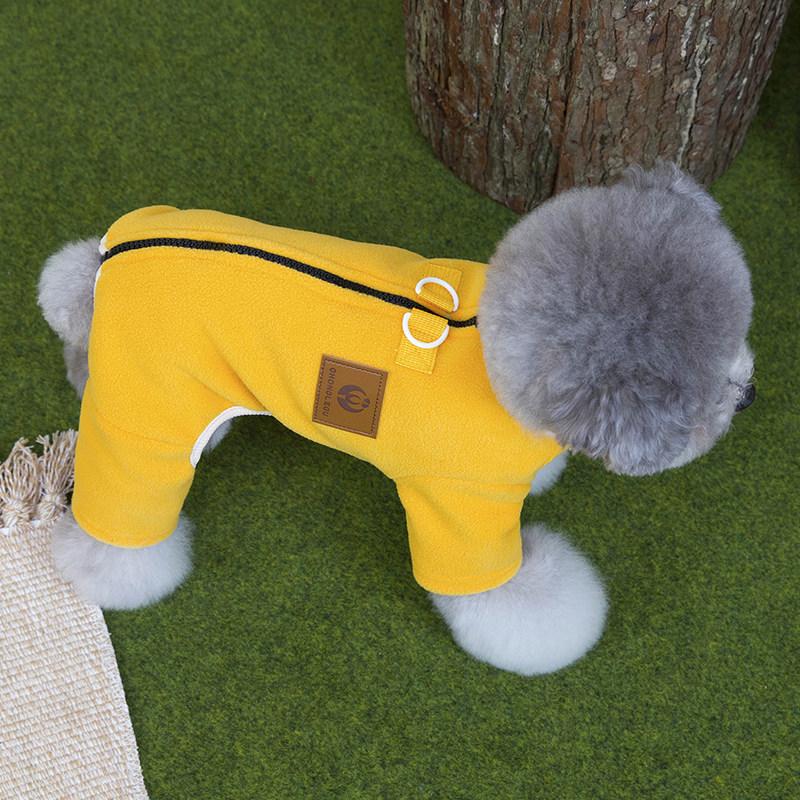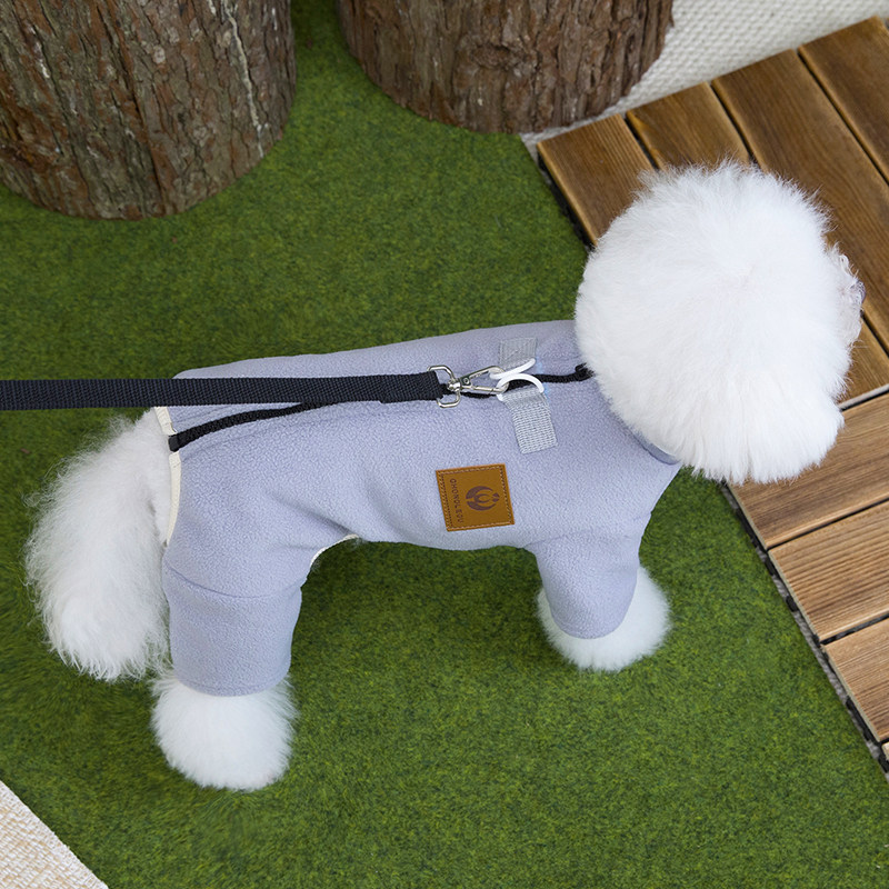 狗狗衣服秋冬装保暖四腿绒衣背开宠物小型犬泰迪比熊博美带牵引环
