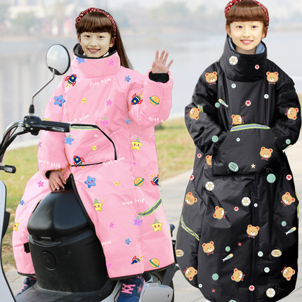 电动车儿童挡风衣后座反穿冬季加绒加厚防水挡风被电瓶摩托防风衣