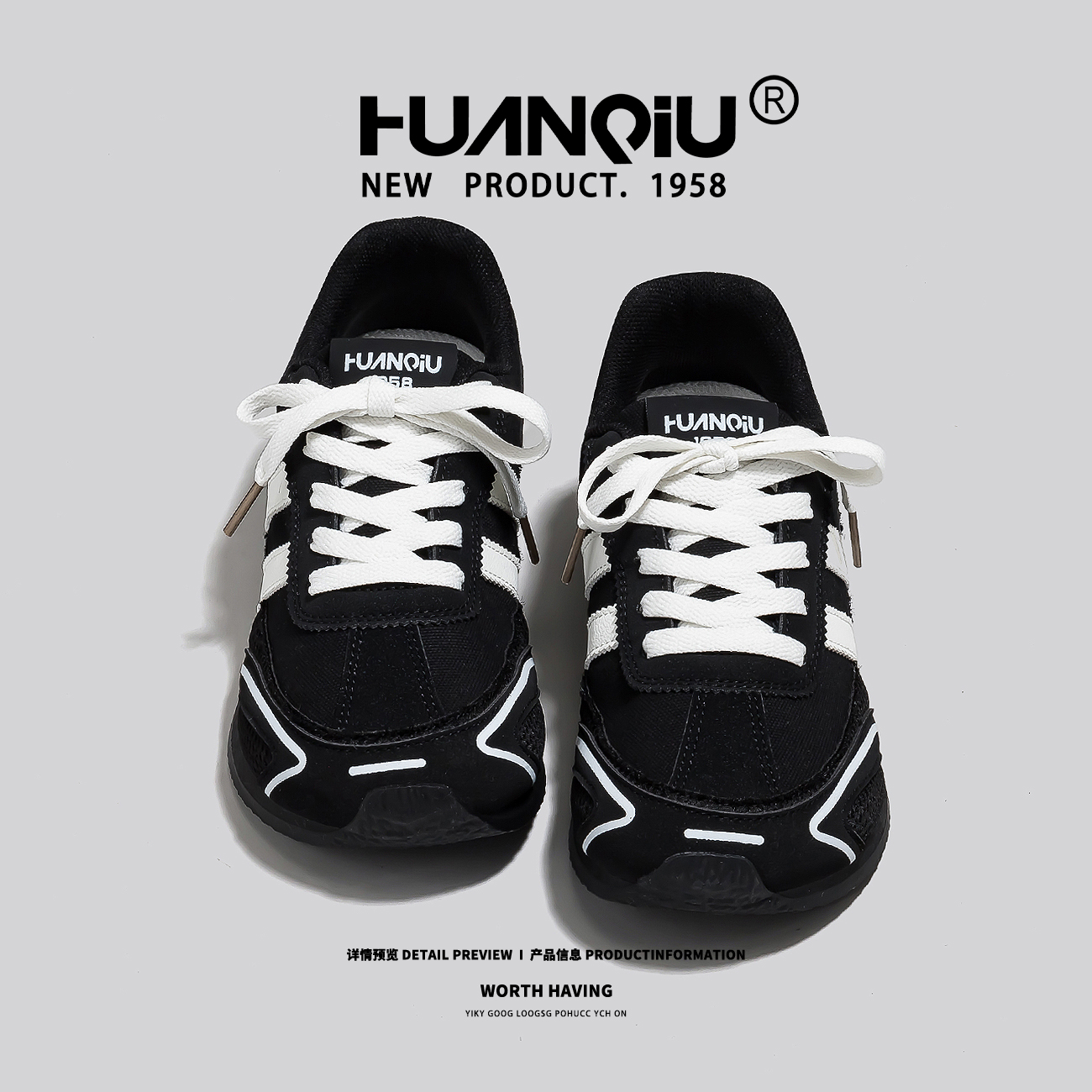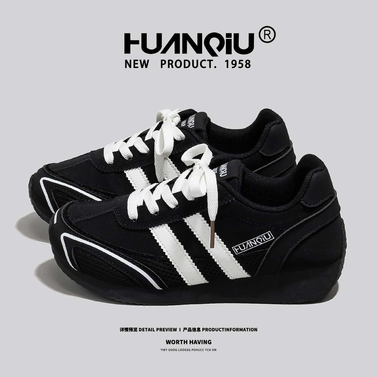 环球厚底黑色阿甘鞋子女款2025秋季新款爆款百搭休闲运动德训鞋子
