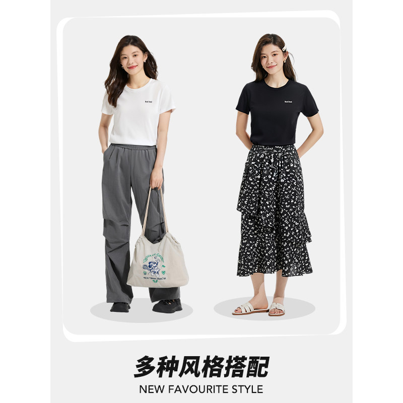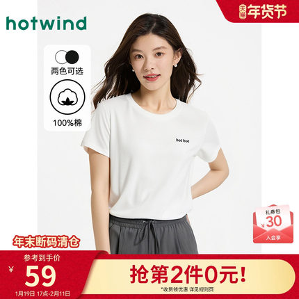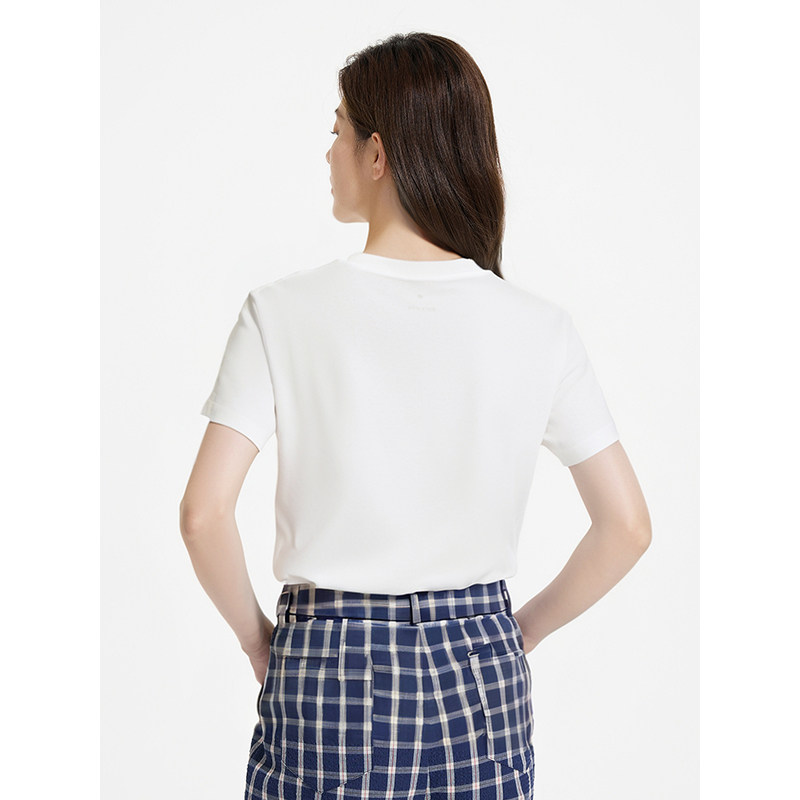 热风女士短袖T恤上衣2025年夏季新款简约小字母绣花白色短袖上衣T
