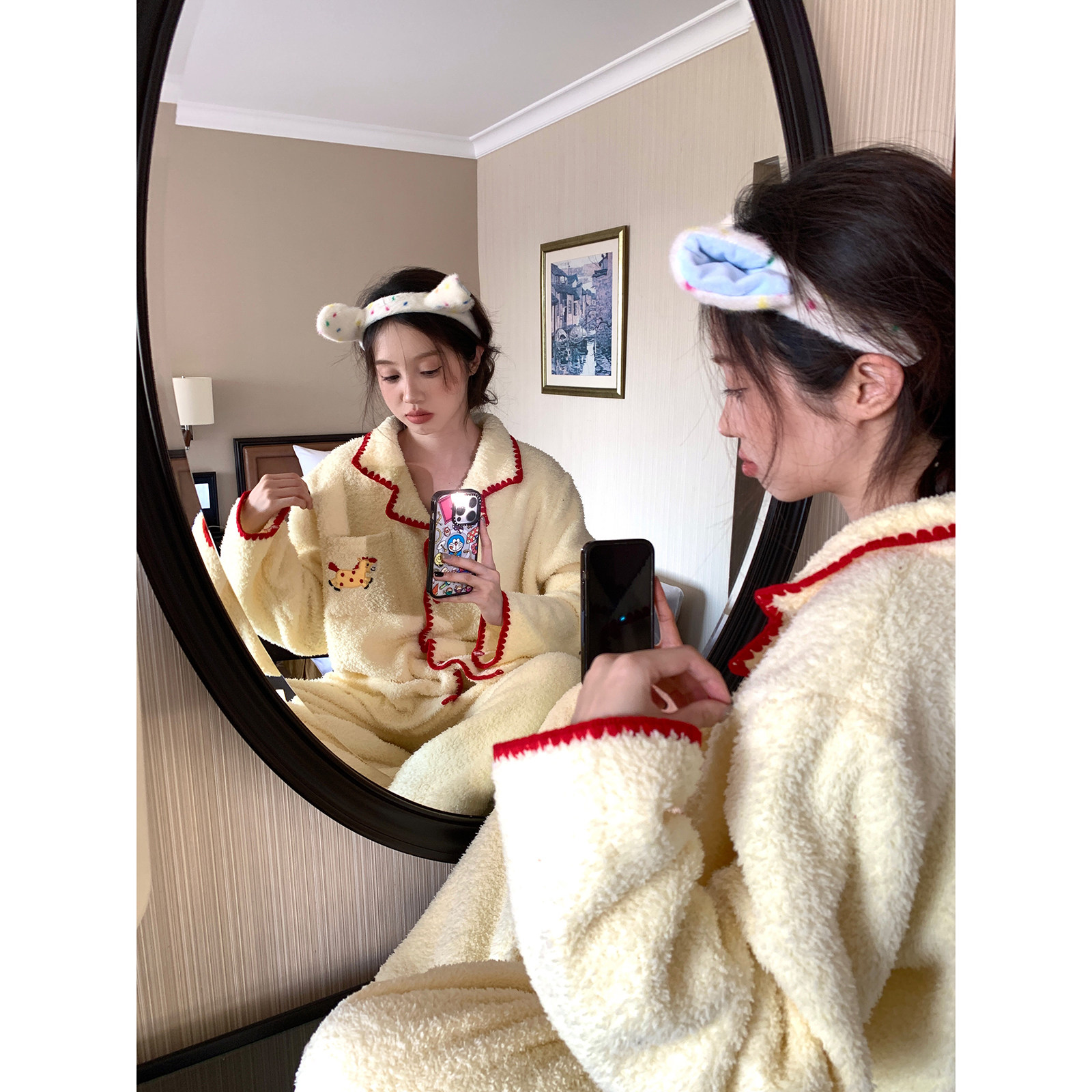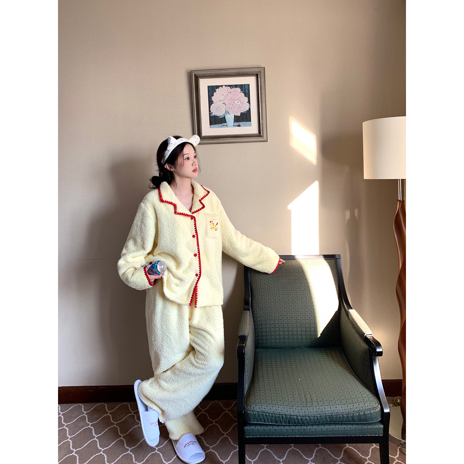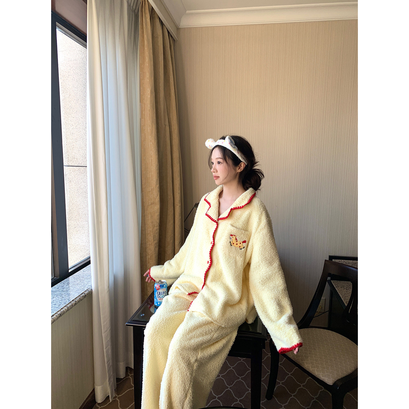 馨帮帮Homedress 撞色边小马珊瑚绒睡衣套装女冬季加厚保暖家居服