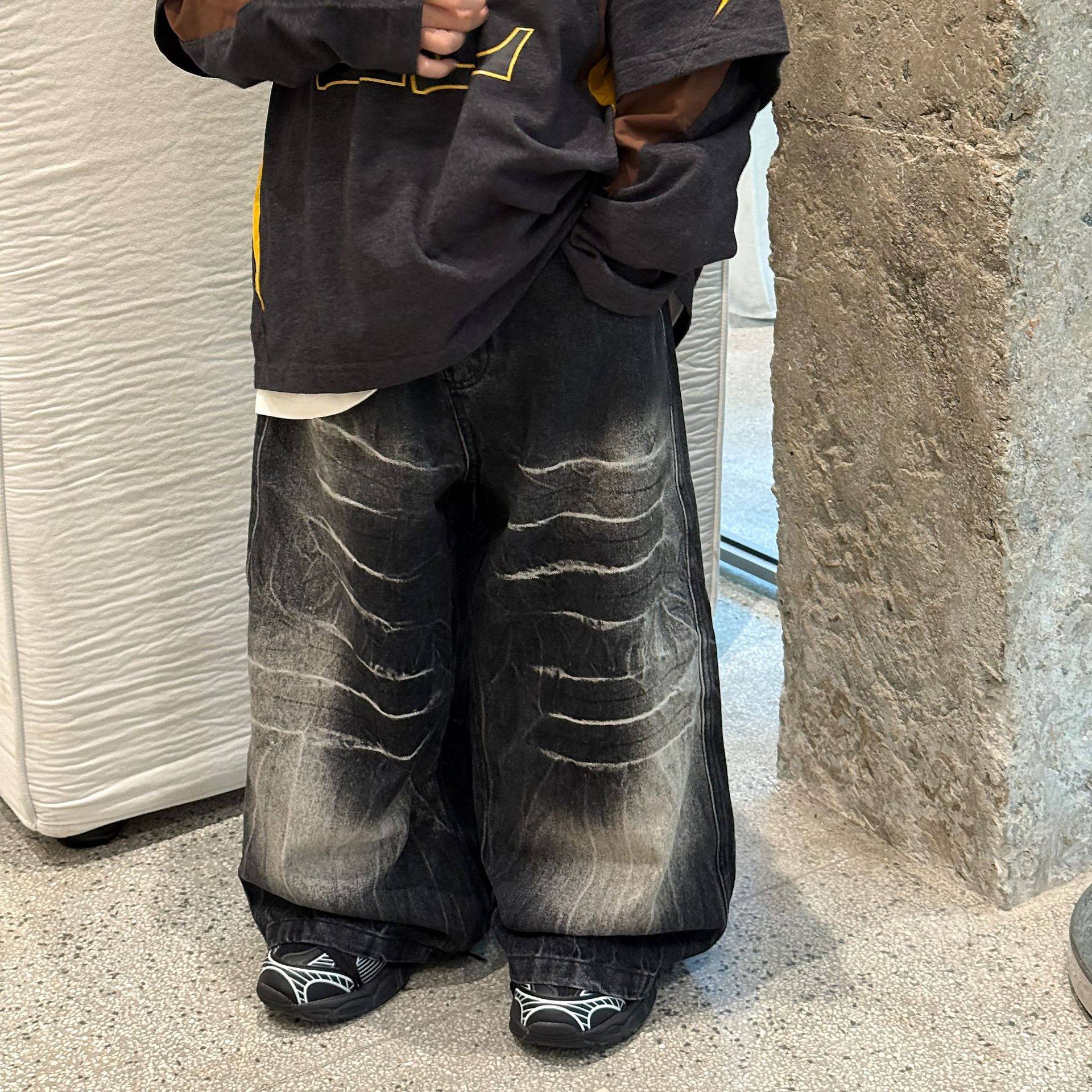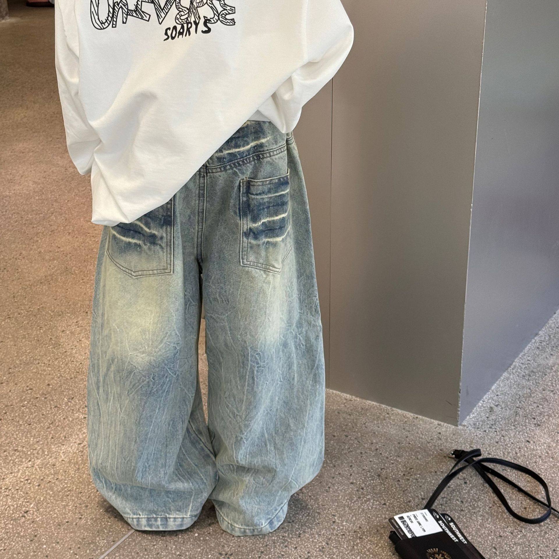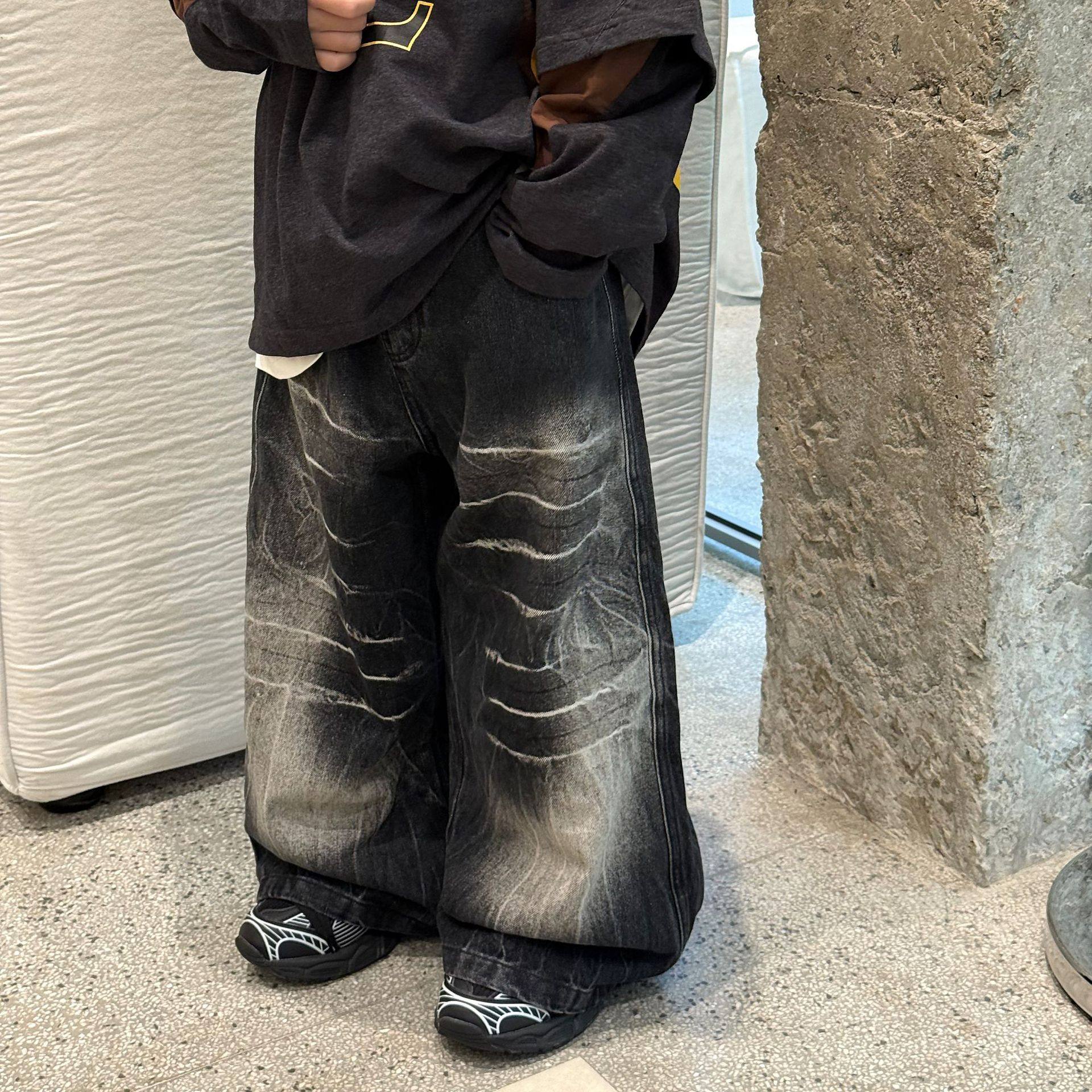 小杰家2025秋季新款男童美式复古休闲牛仔长裤中大童时尚牛仔裤