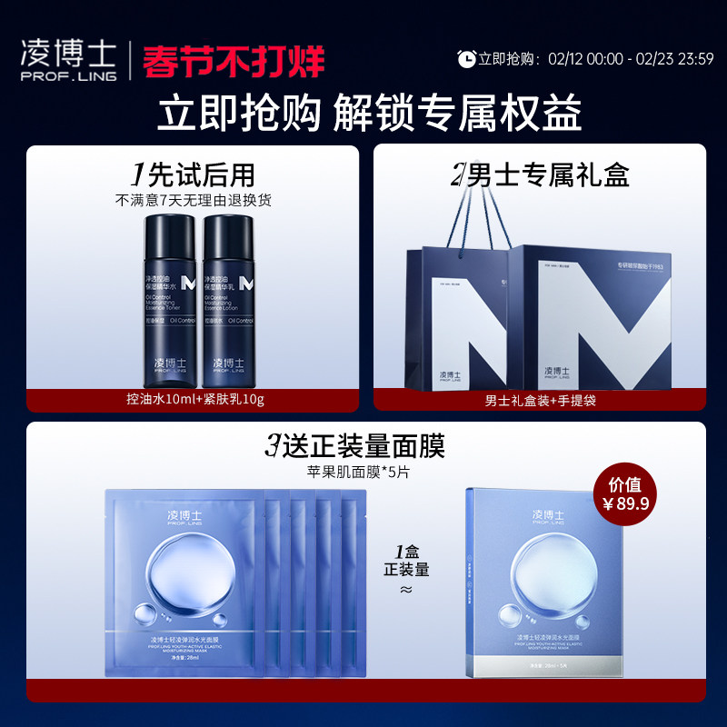 【情人节男生礼物】凌博士男士护肤品套装玻尿酸控油水乳套装学生