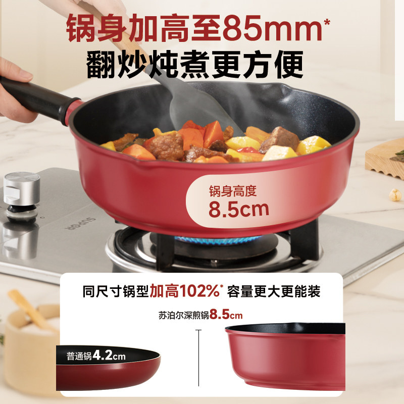 苏泊尔不粘锅聚油平底锅家用煎锅加深煎炒锅电磁炉煤气灶牛排烙饼
