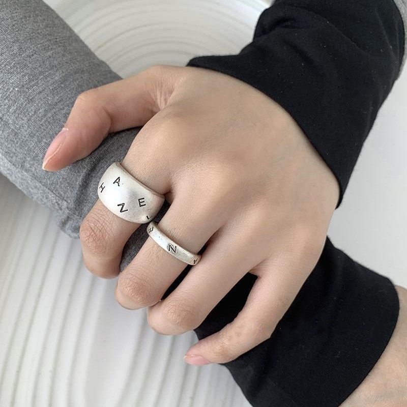 复古字母叠戴戒指女几何时尚简约百搭气质开口指环网红个性食指戒