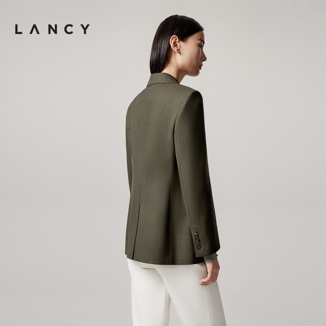 LANCY/朗姿2025秋新款复古通勤羊毛西装外套女高级感直筒西裤套装