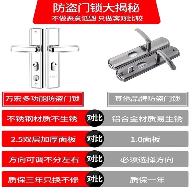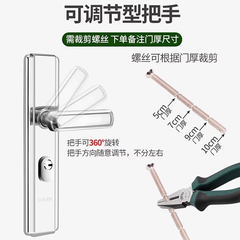 不锈钢防盗门锁套装木门把手面板大铁门锁手柄通用型家用锁具锁芯