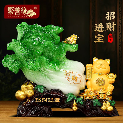 招财进宝白菜摆件招财猫客厅电视柜收银台装饰品店铺乔迁开业礼物