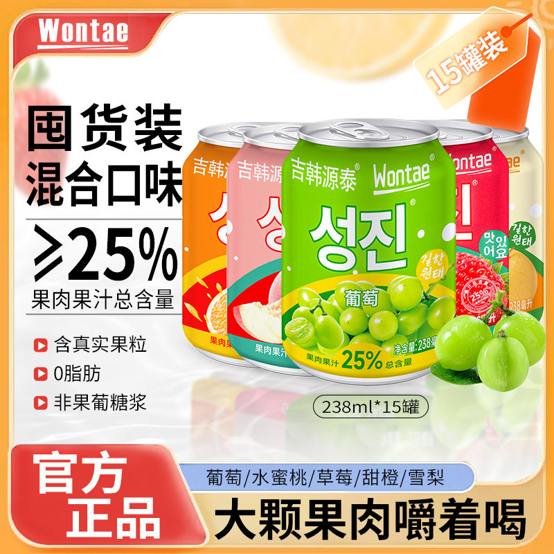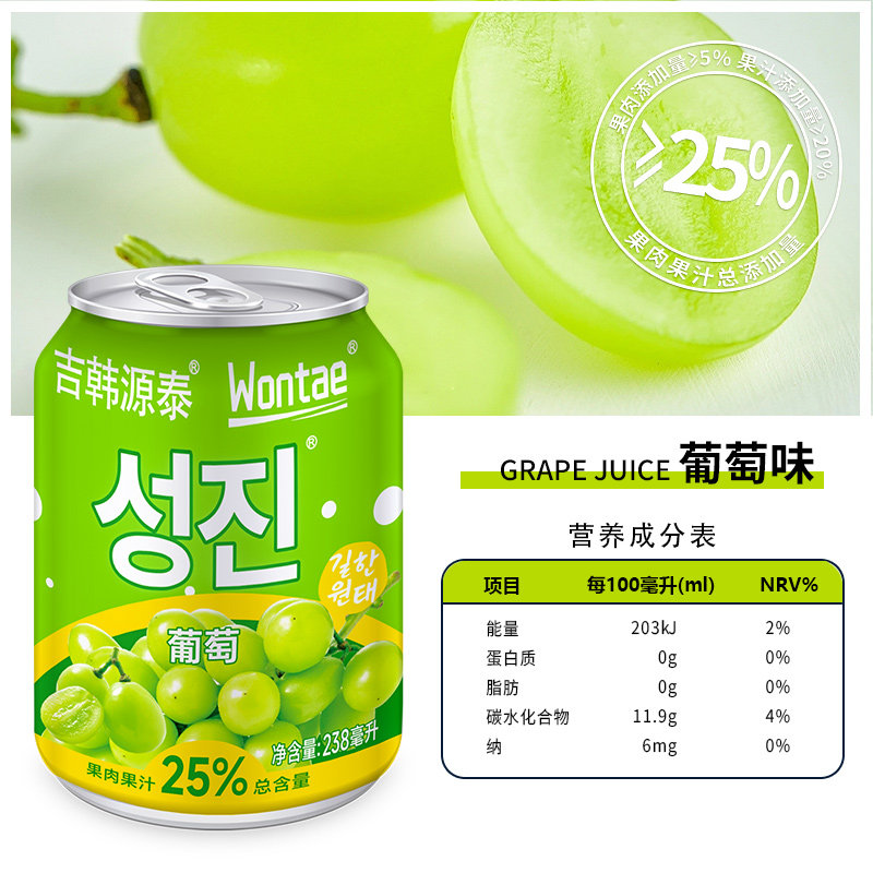 【囤货装】吉韩源泰韩国风味饮料葡萄果肉水果汁0脂整箱网红饮品