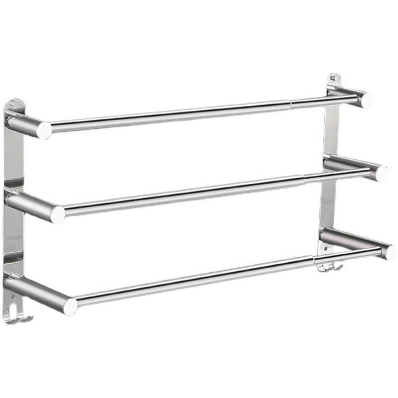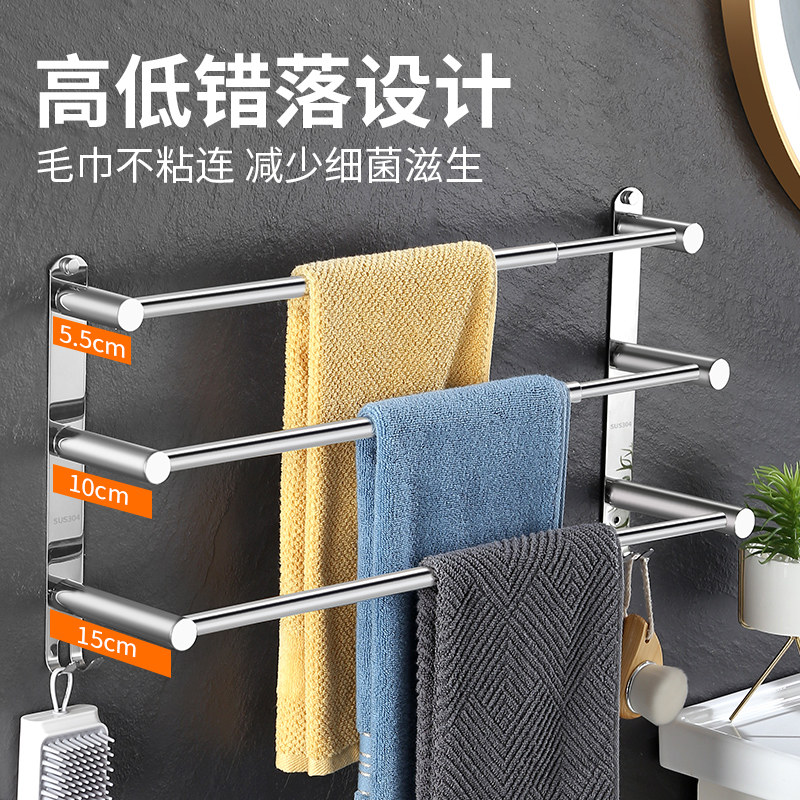 毛巾架卫生间免打孔不锈钢304加厚厕所凉浴室架子可伸缩毛巾杆挂
