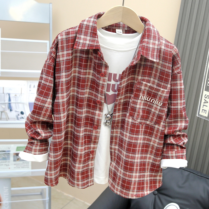 5男童春秋长袖T恤格子衬衫13岁2025新款儿童秋装15大童男装套装潮