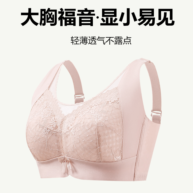 女士内衣大胸显小胸超薄无钢圈胸罩聚拢收副乳防走光大码薄款文胸