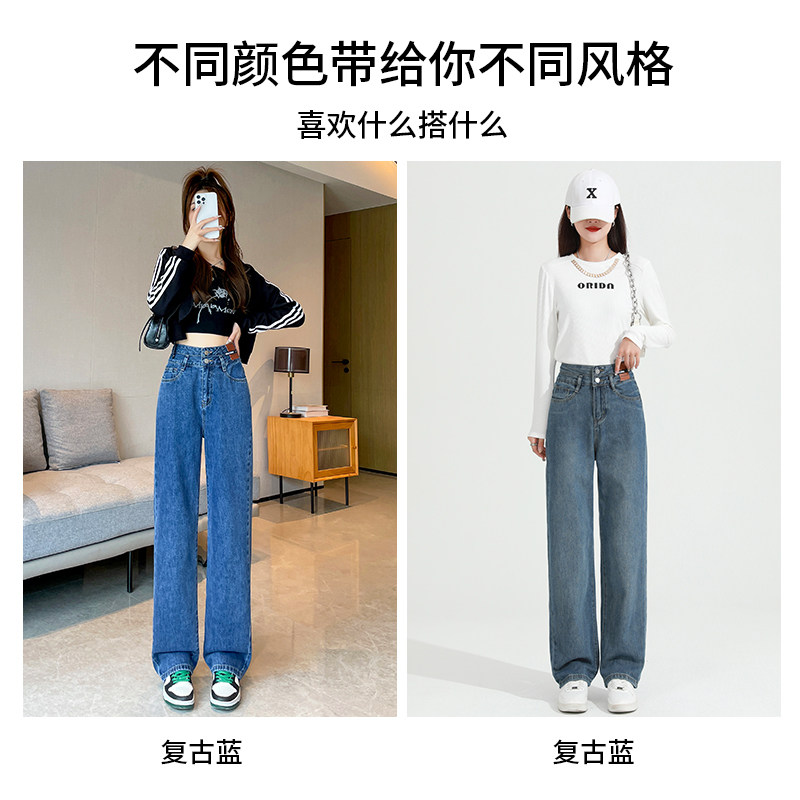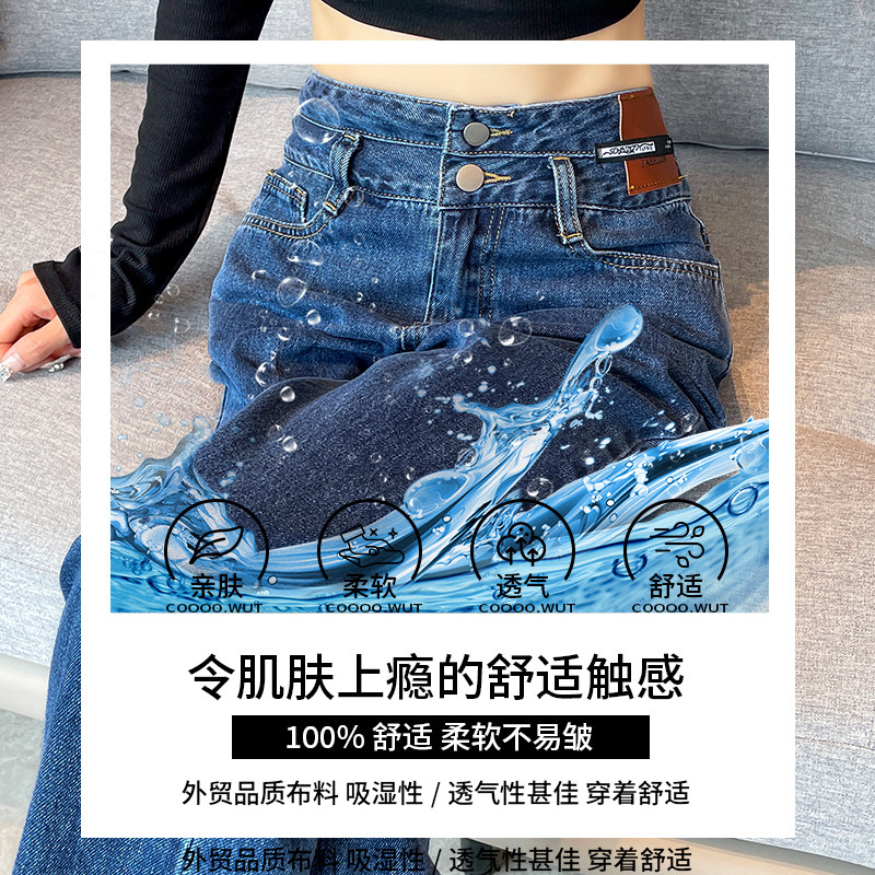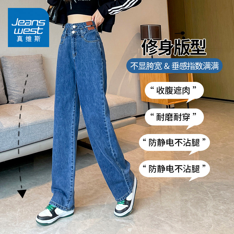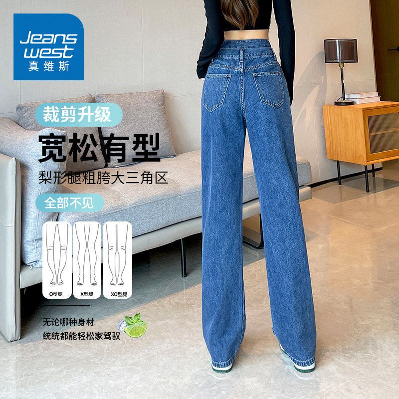 KZH真维斯双扣牛仔裤女夏季薄款宽松直筒裤高腰显瘦阔腿烟管长裤
