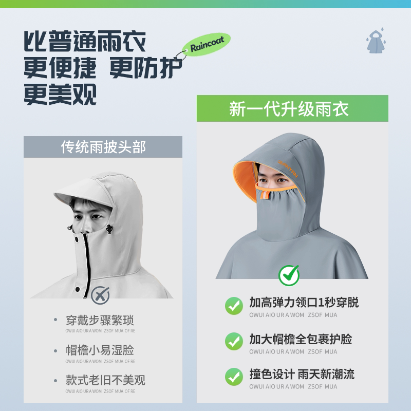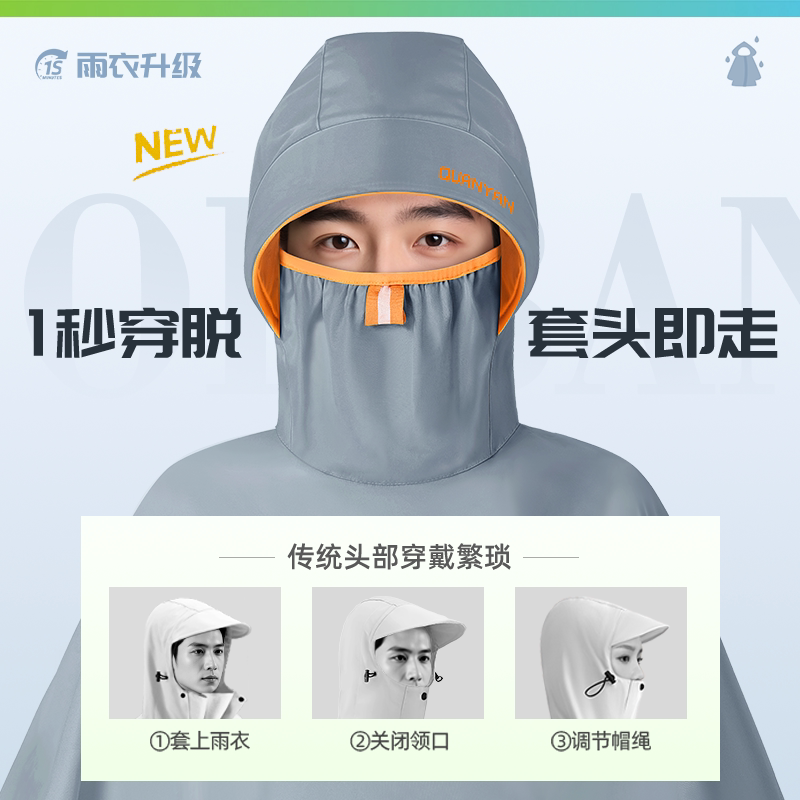 【弹力高领口】电动车单人雨衣
