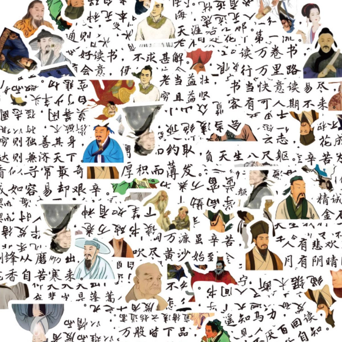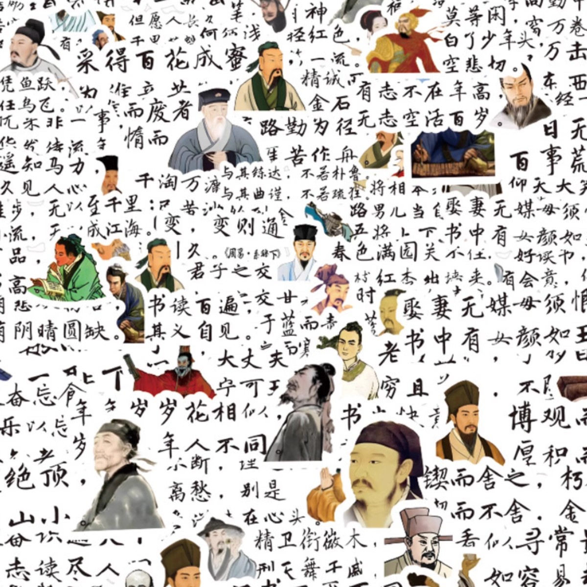 60张古风励志贴纸古诗文语录手账贴画儿童学习装饰手机壳diy贴画