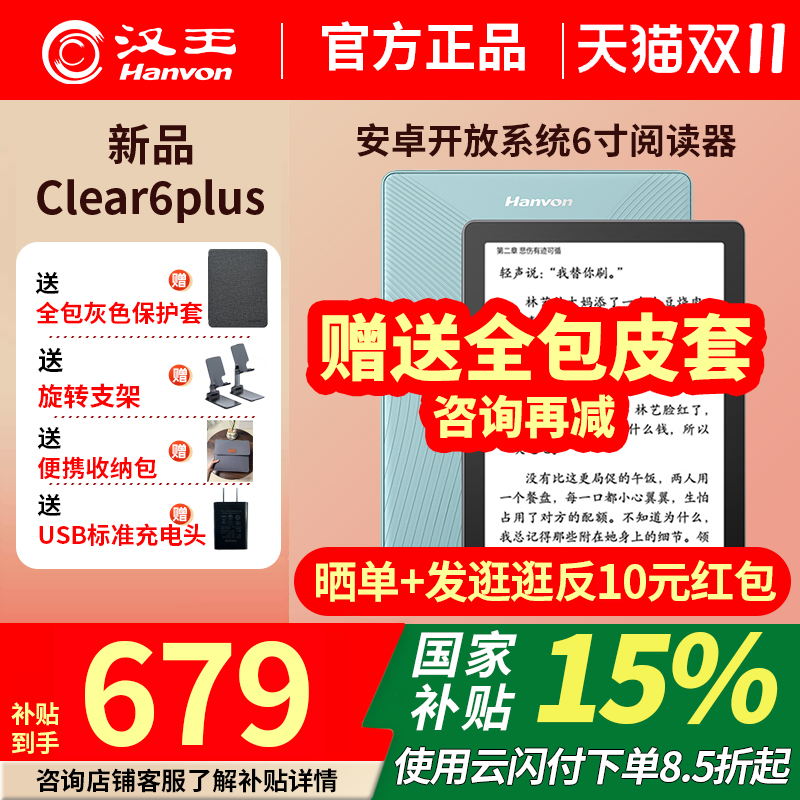 【入会立减】送原装皮套汉王电纸书clear6plus6英寸电子墨水屏阅读器电子纸护眼读书阅览器电纸书水墨屏