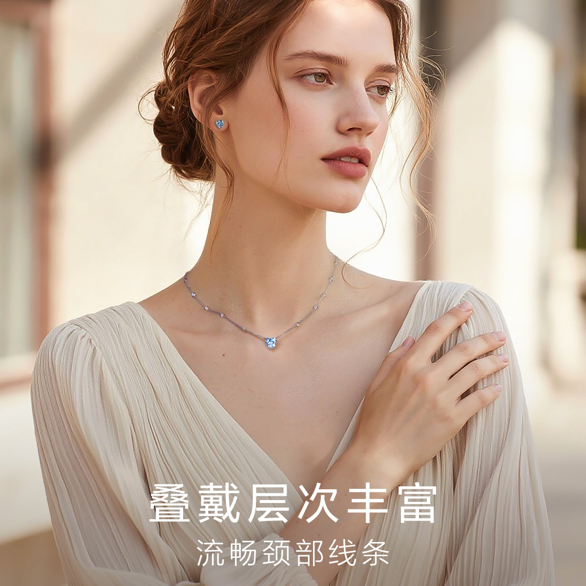 【生日礼物】APM Monaco蓝色爱心925纯银项链女精致精致锁骨链