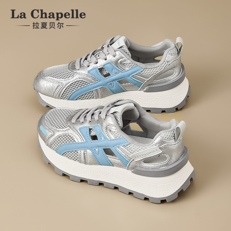 清仓拉夏贝尔厚底老爹鞋女2025新款夏季透气网面百搭运动休闲板鞋