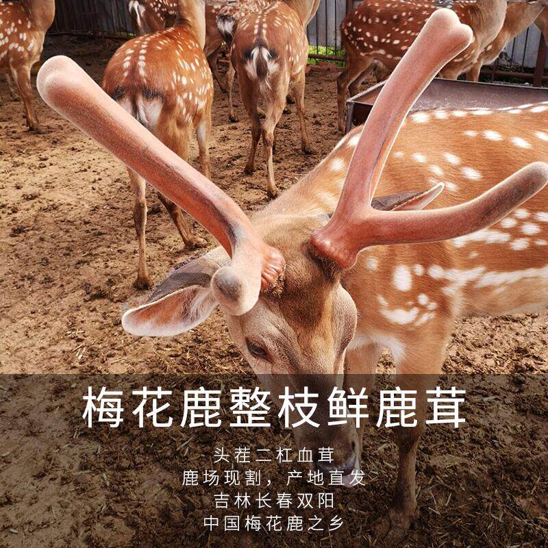 新鲜鹿茸整根头茬二杠吉林梅花鹿茸整枝带血鹿茸泡酒药材煲汤鹿角