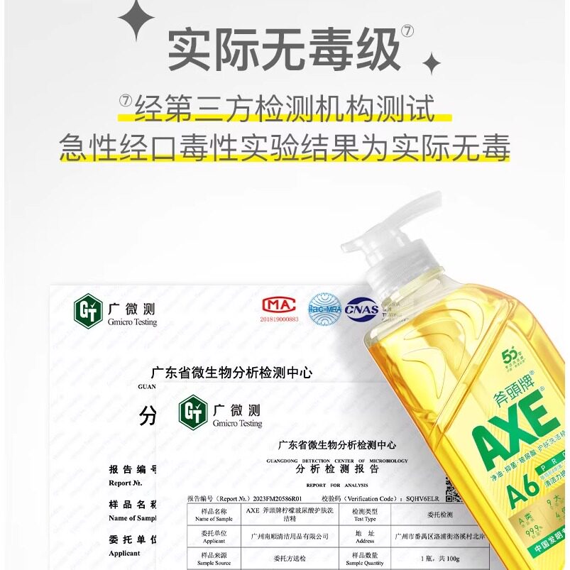 AXE斧头牌护肤洗洁精玻尿酸油柑茶家庭装家用食品用A类标准旗舰店