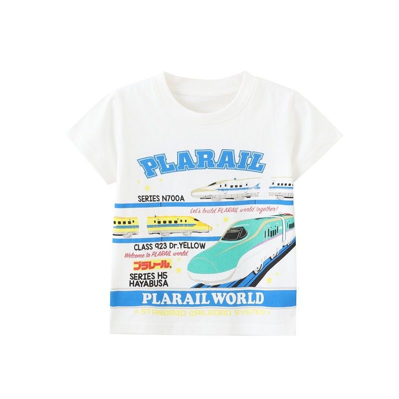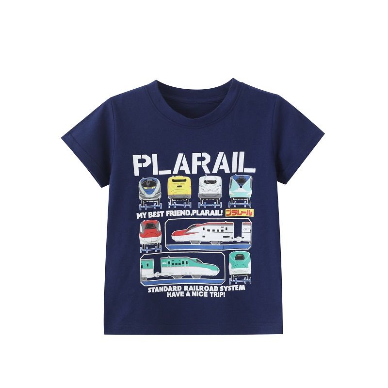 日单男童夏季短袖T恤儿童宝纯棉火车休闲圆领上衣中大童半袖外贸a