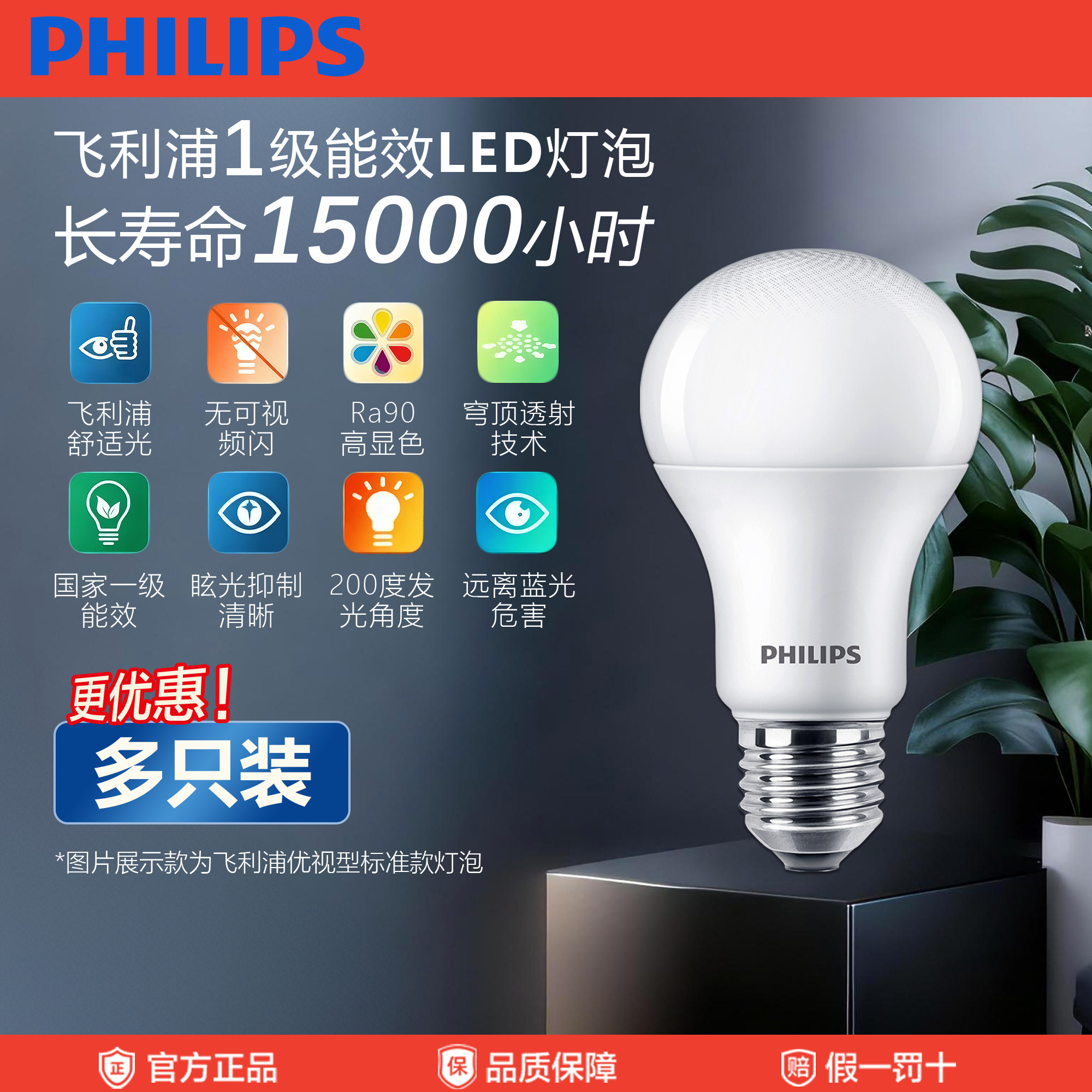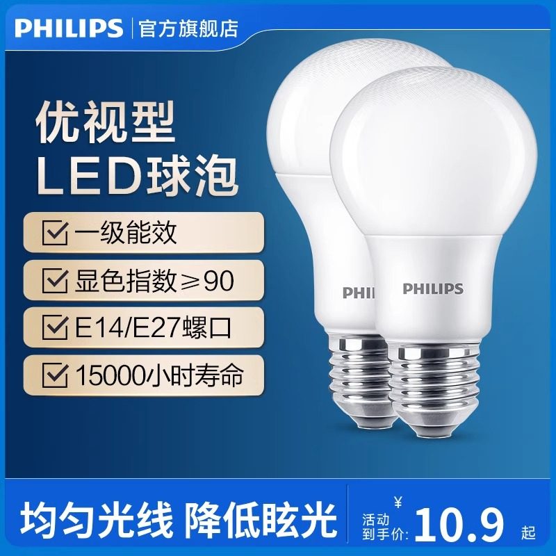 飞利浦led螺丝灯泡E27家用吊灯灯泡暖白光超亮节能光源电灯泡球泡