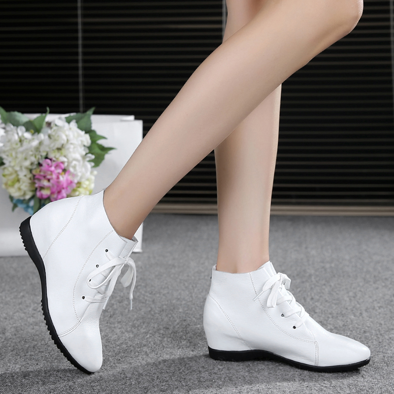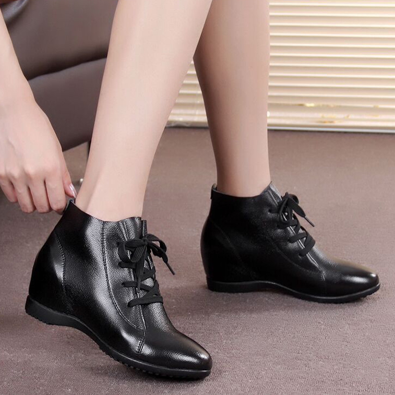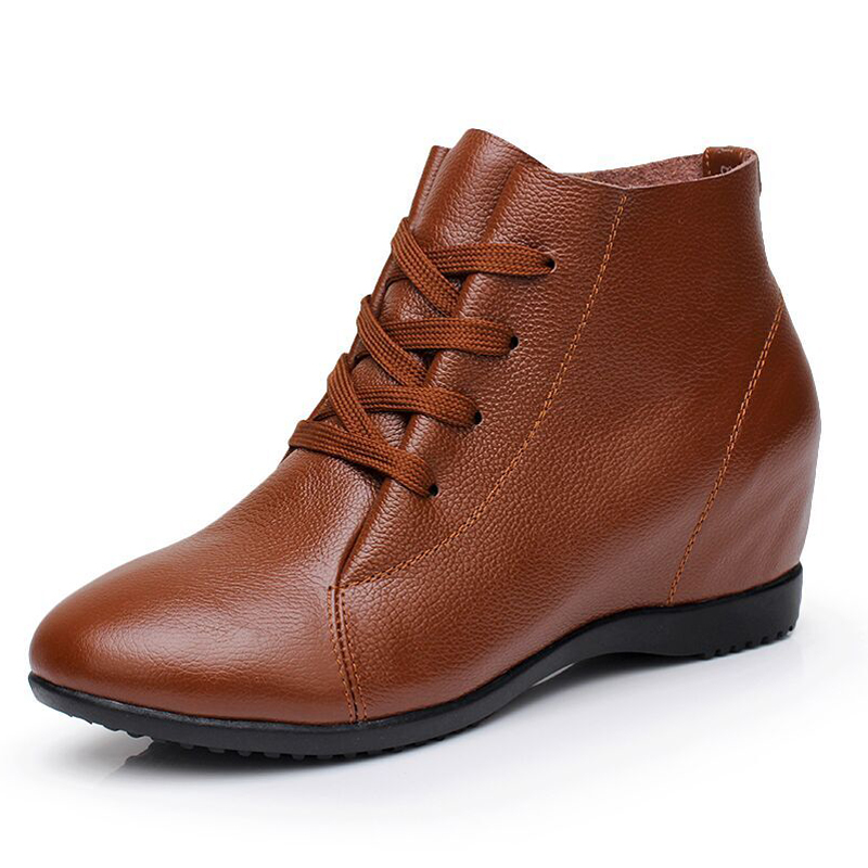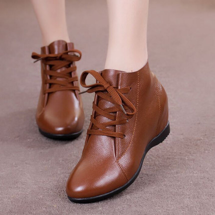 真皮平跟内增高短靴女春秋软底单靴大码妈妈鞋加绒棉靴休闲女鞋子