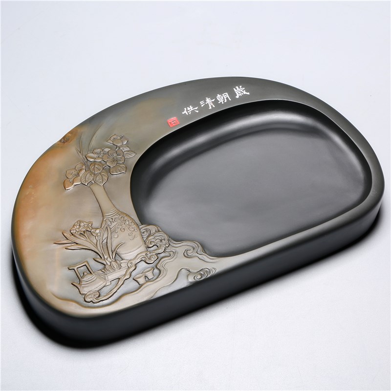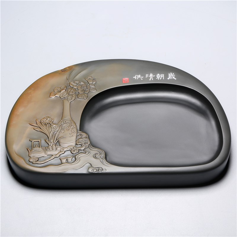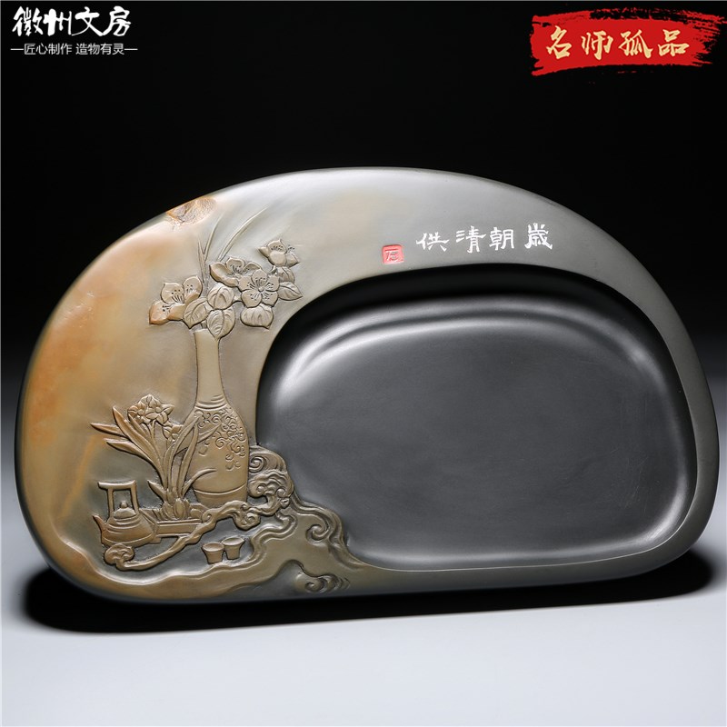 孤品名师老坑砚台/岁o朝清供/精品原石歙砚籽料天然高档文房收藏