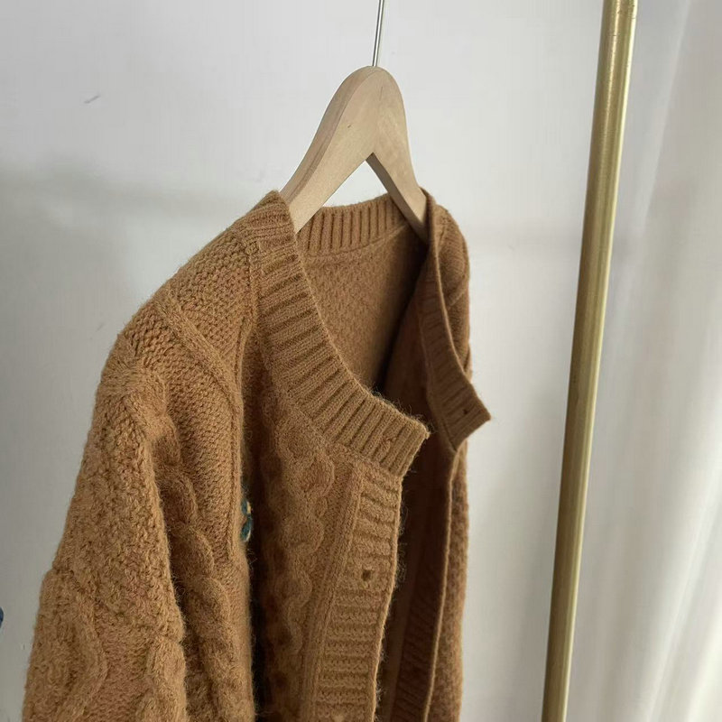 加厚毛衣外套 复古绞花立体花朵装饰开衫女2025