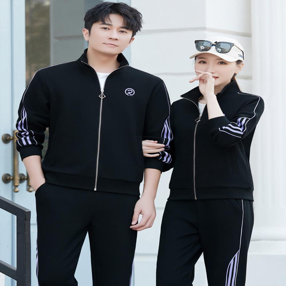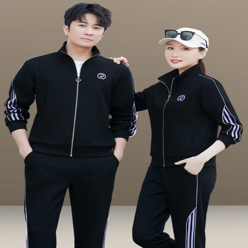 春秋季时尚休闲情侣运动套装男女同款健身跑步运动服两件套