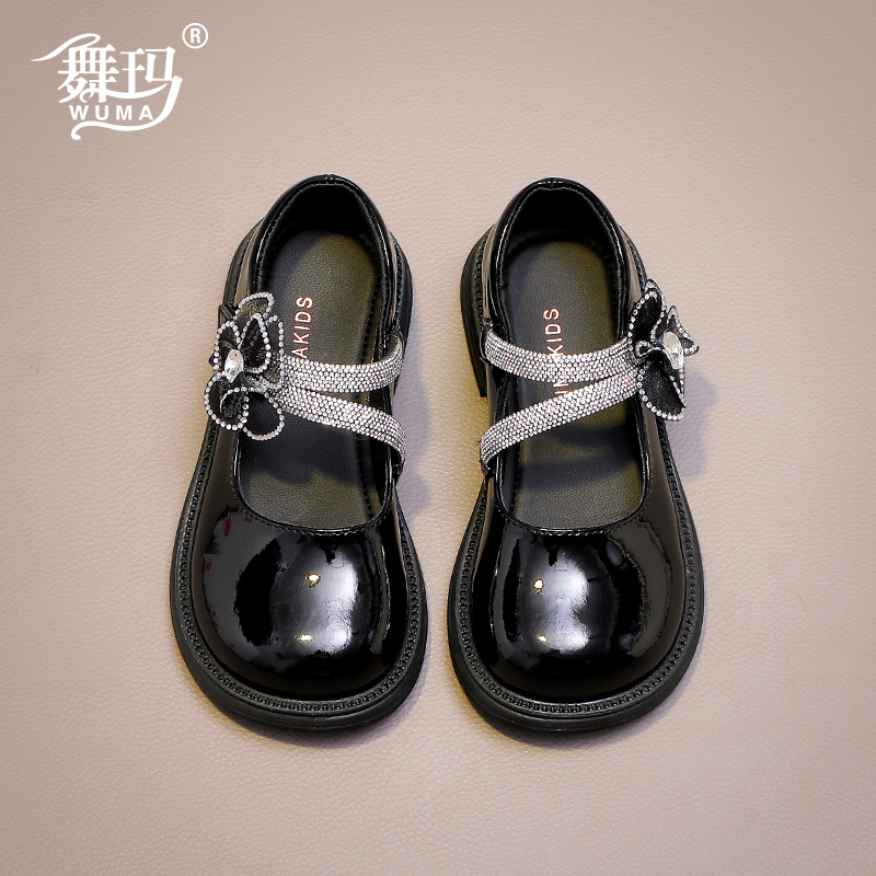 舞玛女童鞋子儿童皮鞋2025新款秋季小女孩单鞋黑色百搭软底公主鞋