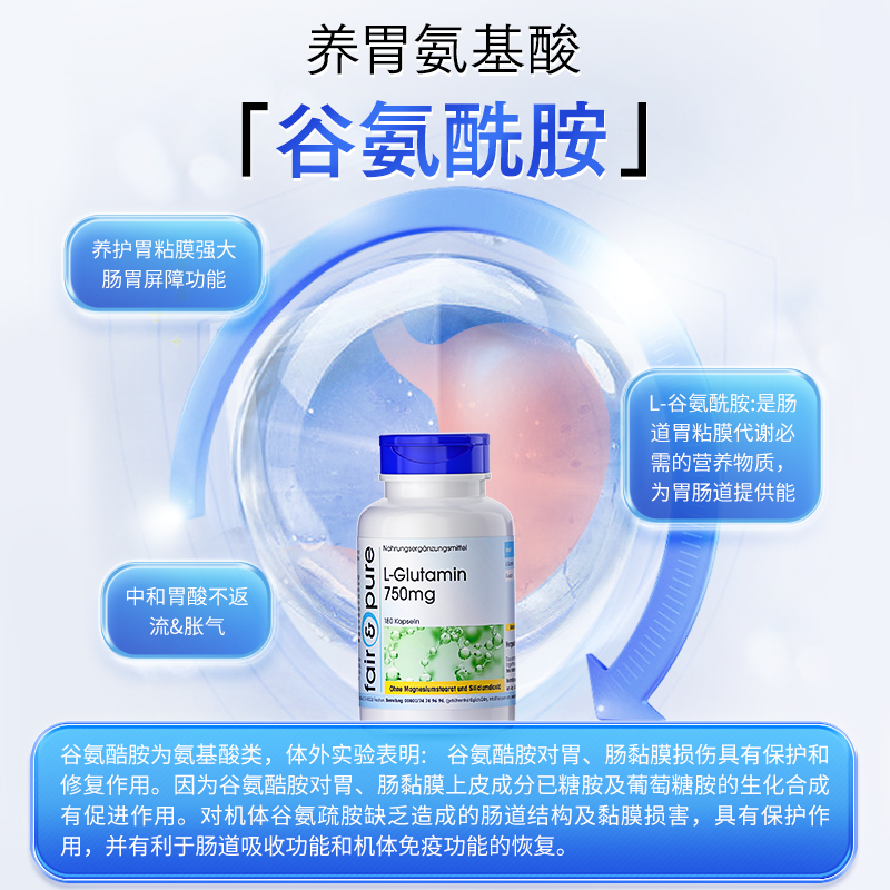 fairpure德国谷氨酰胺胃粘膜保护修复食品调理肠胃养胃保健品胶囊