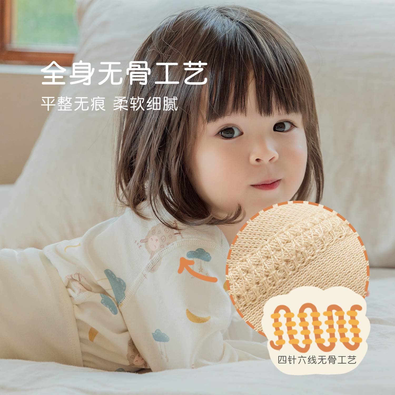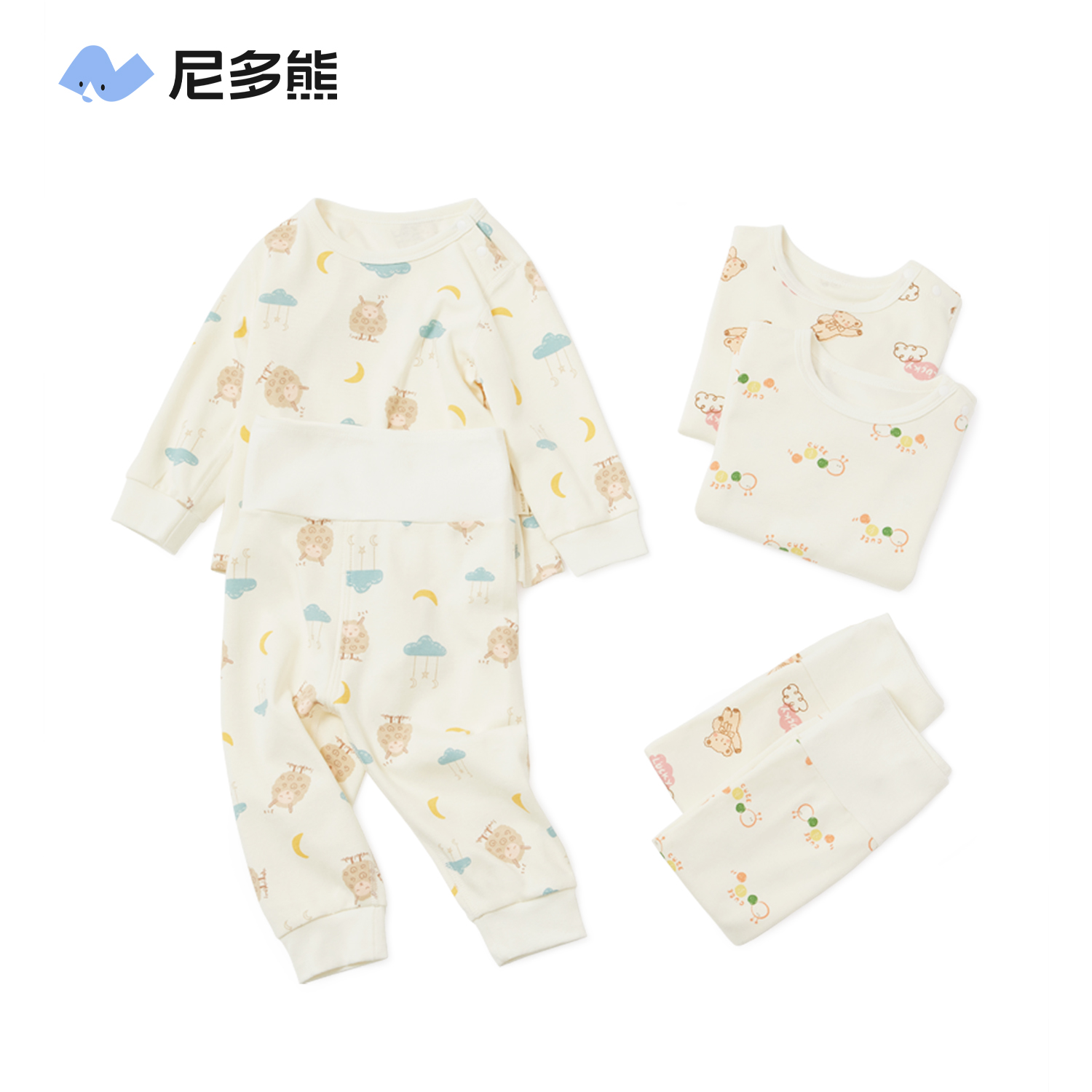 尼多熊春秋款宝宝高腰护肚内衣套装儿童睡衣婴儿纯棉保暖衣